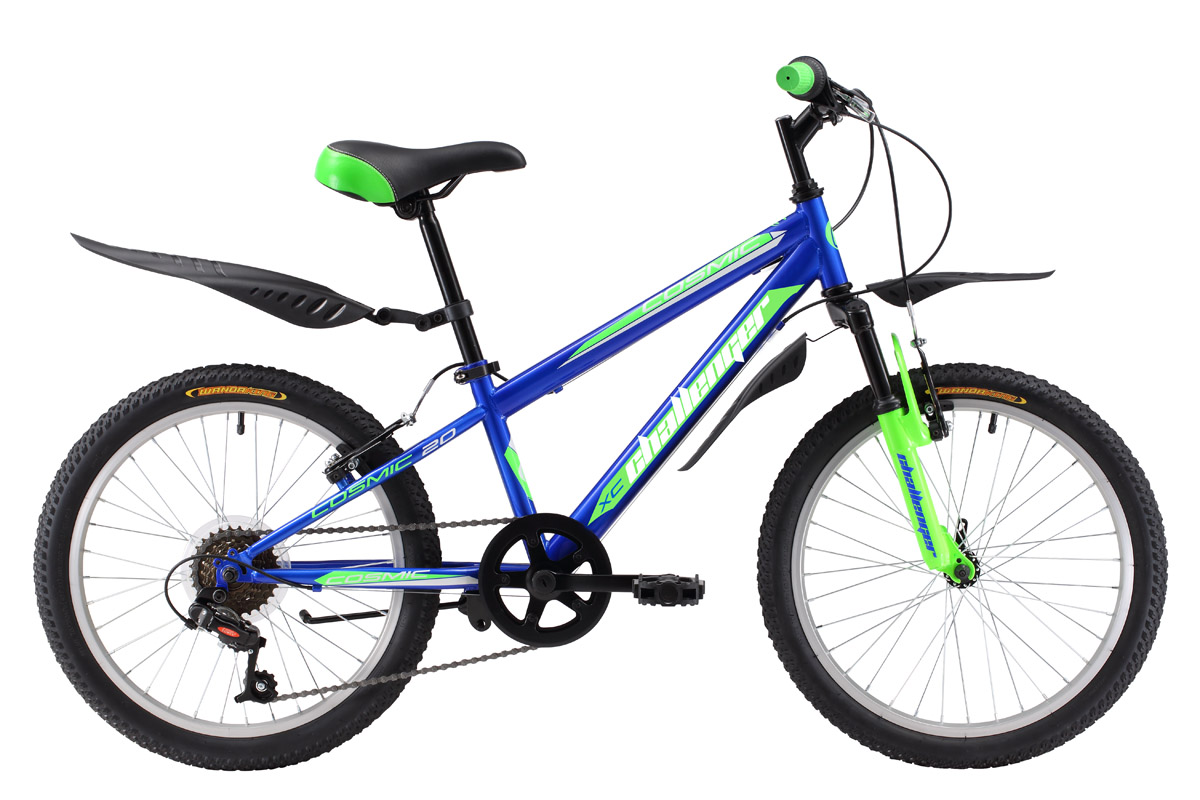 Велосипед Challenger Cosmic 20 предназначен для детей от 6 до 8 лет и ростом 115-127см. В основе конструкции лежит прочная стальная рама, дополненная передней амортизационной вилкой. Велосипед имеет два варианта дизайна, оптимальных для мальчиков. Велосипед оборудован 6 передачами, благодаря которым ребёнок выбирает удобный скоростной режим и оптимальную нагрузку. Ободные тормоза обеспечивают эффективное и безопасное торможение. Велосипед Challenger Cosmic 20 укомплектован удобными крыльями и подножкой.