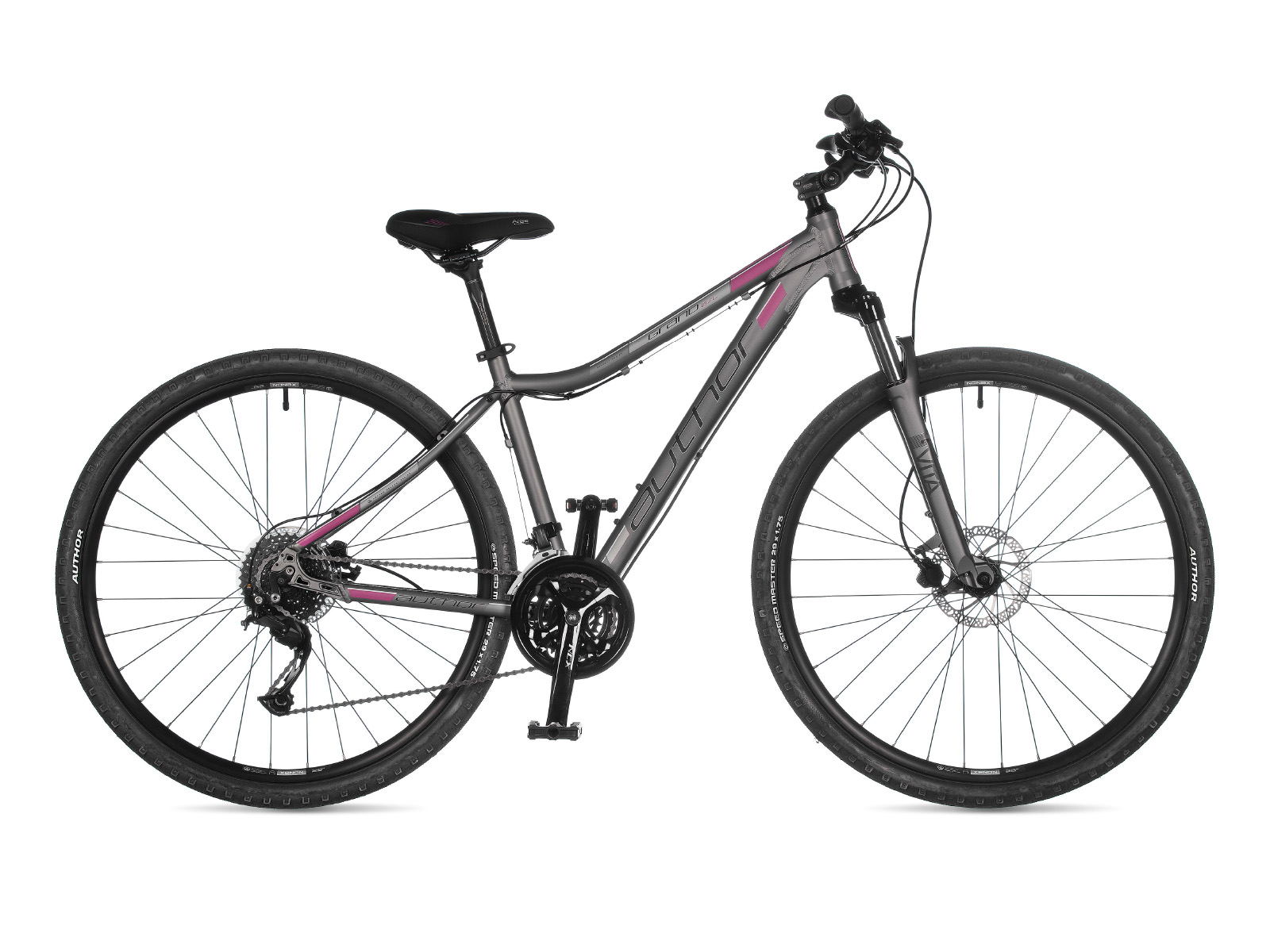 Модель GRAND ASL Год 2021 Материал рамы Алюминий (Alloy) Рама/описание alloy 6061 29" (ASL) Тип вилки Амортизационная (пружина) Вилка/регулировки RST Vita TnL oil, lock out (80 mm) Спицы black stainless steel 2.0 mm Обода AUTHOR Xenon 29 32 holes Покрышки AUTHOR Speed Master 29" × 1.75" Тормоза Дисковые гидравлические Грипсы AUTHOR ErgoGrip Lock Тормоз TEKTRO Vela disc hydraulic (6" rotors) Тормозные ручки TEKTRO Vela Уровень оборудования Продвинутый Шифтеры SHIMANO Alivio (27) Переключатель передний SHIMANO Altus (31.8) Переключатель задний SHIMANO Alivio Цепь KMC Z9 Каретка SUNTOUR XCT cartridge Шатуны SUNTOUR NCX 44-32-22 teeth 170 mm cranks Количество скоростей 27 Руль AUTHOR 25 mm 660 / 680 mm Рулевая колонка AUTHOR Integrated 1-1/8" Вынос UNO adjustable Седло AUTHOR Area Gel Подседельный штырь AUTHOR alloy (27.2) Педали AUTHOR Non Slip alloy Втулка передняя QUANDO Disc 32 holes Вес 14,5 kg / 17" Втулка задняя QUANDO Disc 32 holes -